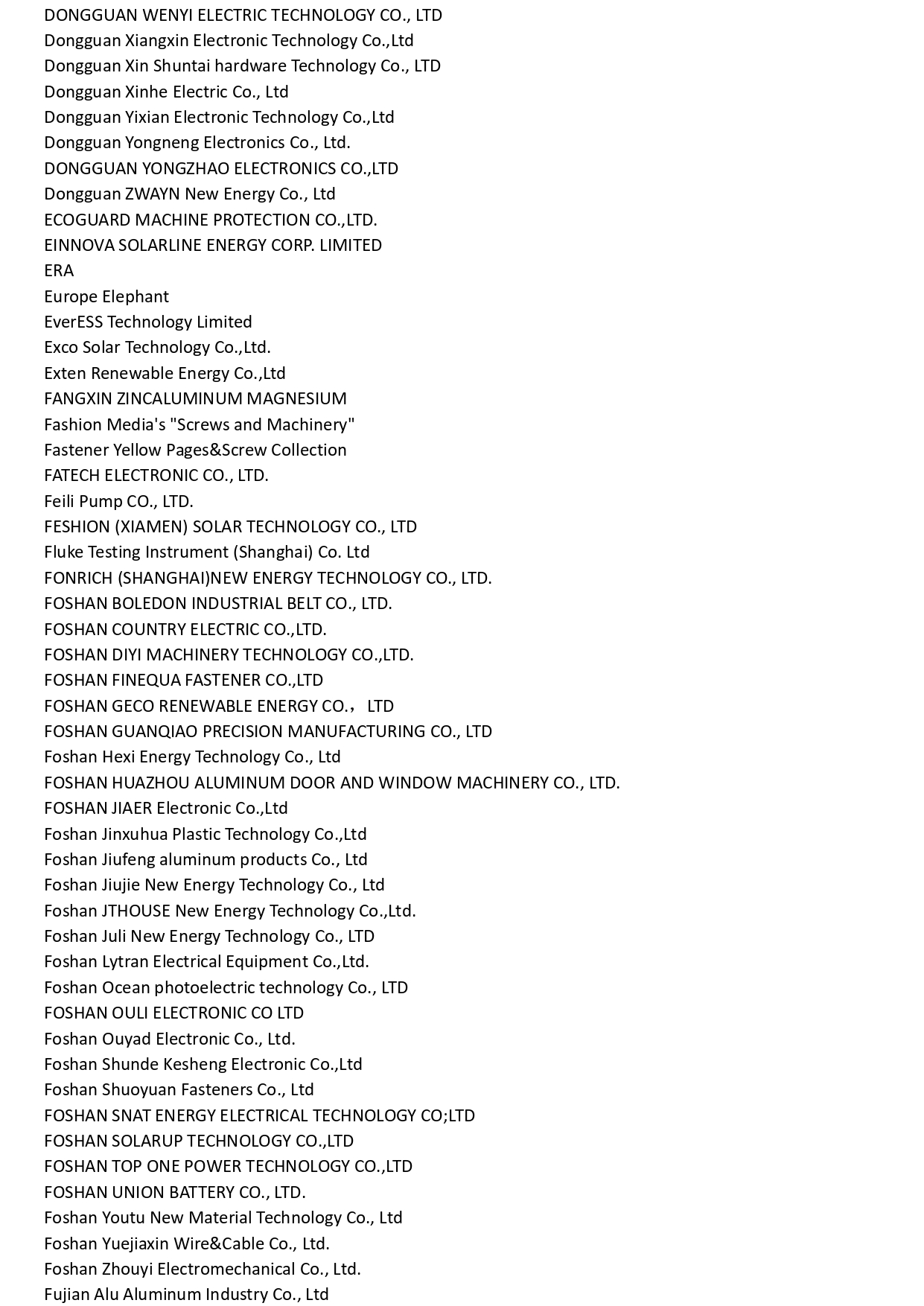 Exhibitor List